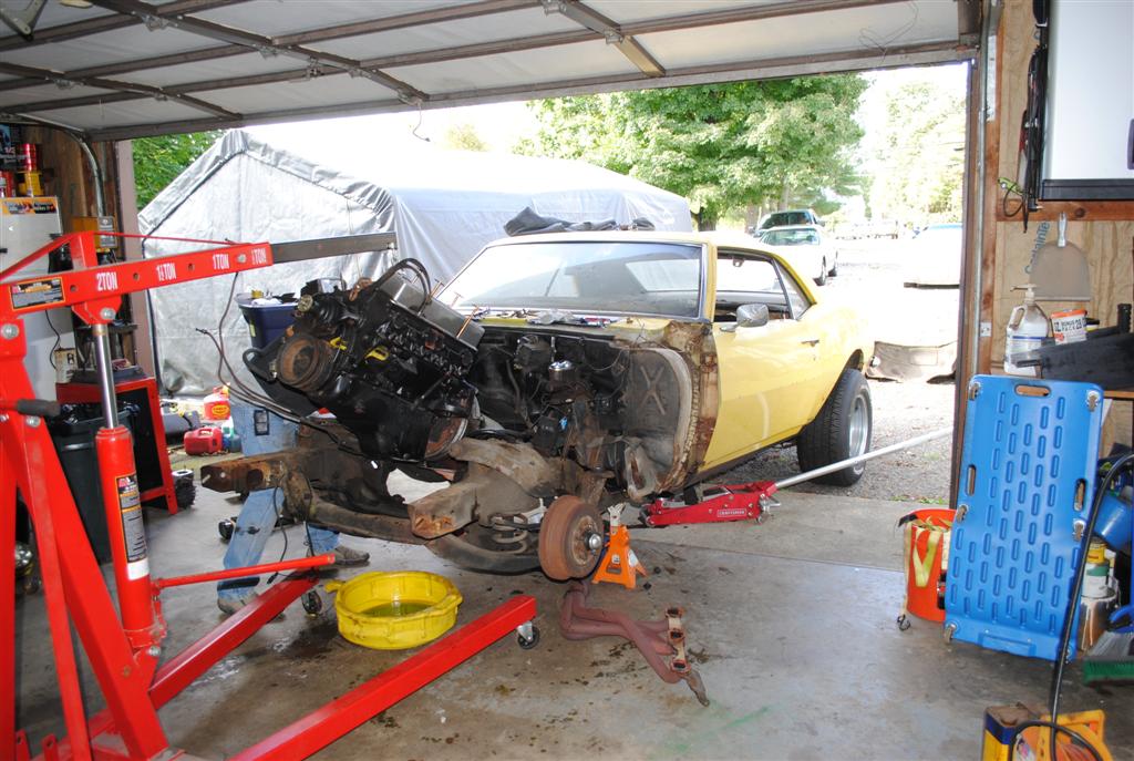 it started life as a regular camaro, 327, PG. nothing fancy. she had a couple different 350's in it and changed the trans to a 350. but now's it's time to get completely done! i know she's been waiting patiently while i work on my cars, so now's the time for me to work on her's. BUT, it's not like she didn't have anything to go to the shows and cruises with. she does have a '70 Z28 and '94 6 speed Vette