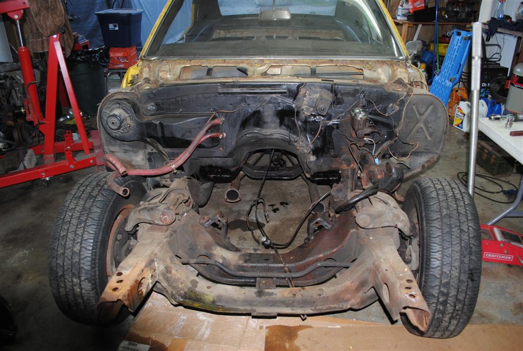 not sure if i'm going to that "frame off" level, but it's basically down to a shell on wheels. the front body mounts have already been replaced before it got put away 12 years ago. it's all gonna get cleaned up and painted on the underside.