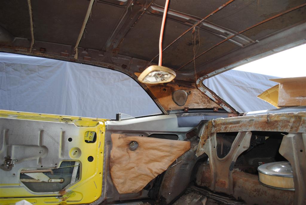 no new pics yet, but i have the windshield out, the trunk lid off, the whole interior out and i just removed the gas tank. the wiper motor and linkage is out. the back 1/4 windows would hardly move, so with a generous helping of white grease that i worked into the metal tracks, now they work great.