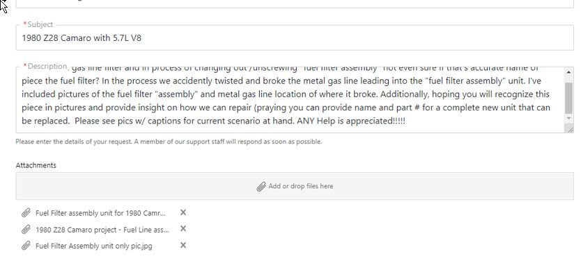 1980 Z28 Fuel Filter assembly where metal gas line meets