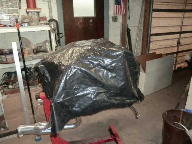 I wanted it upside down to install the gaskets and seals. I think it all worked out well. I have an old dist to prime with and when I time the dist.I'll index. It's just sitting there now plugging the hole. I want the motor all sealed up,covered and in the other room before I start to cut and grind to fit the new rad.