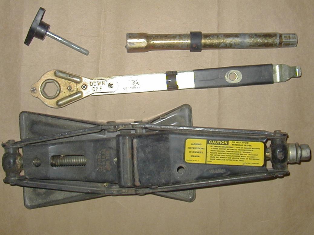 I have the jack (stamped 14092121 under the caution label) as well as the hold-down wingbolt, a long double hex extension, and a flat ratcheting wrench having a center cap pry tip at the end. The ratcheting thing is stamped 10078348.