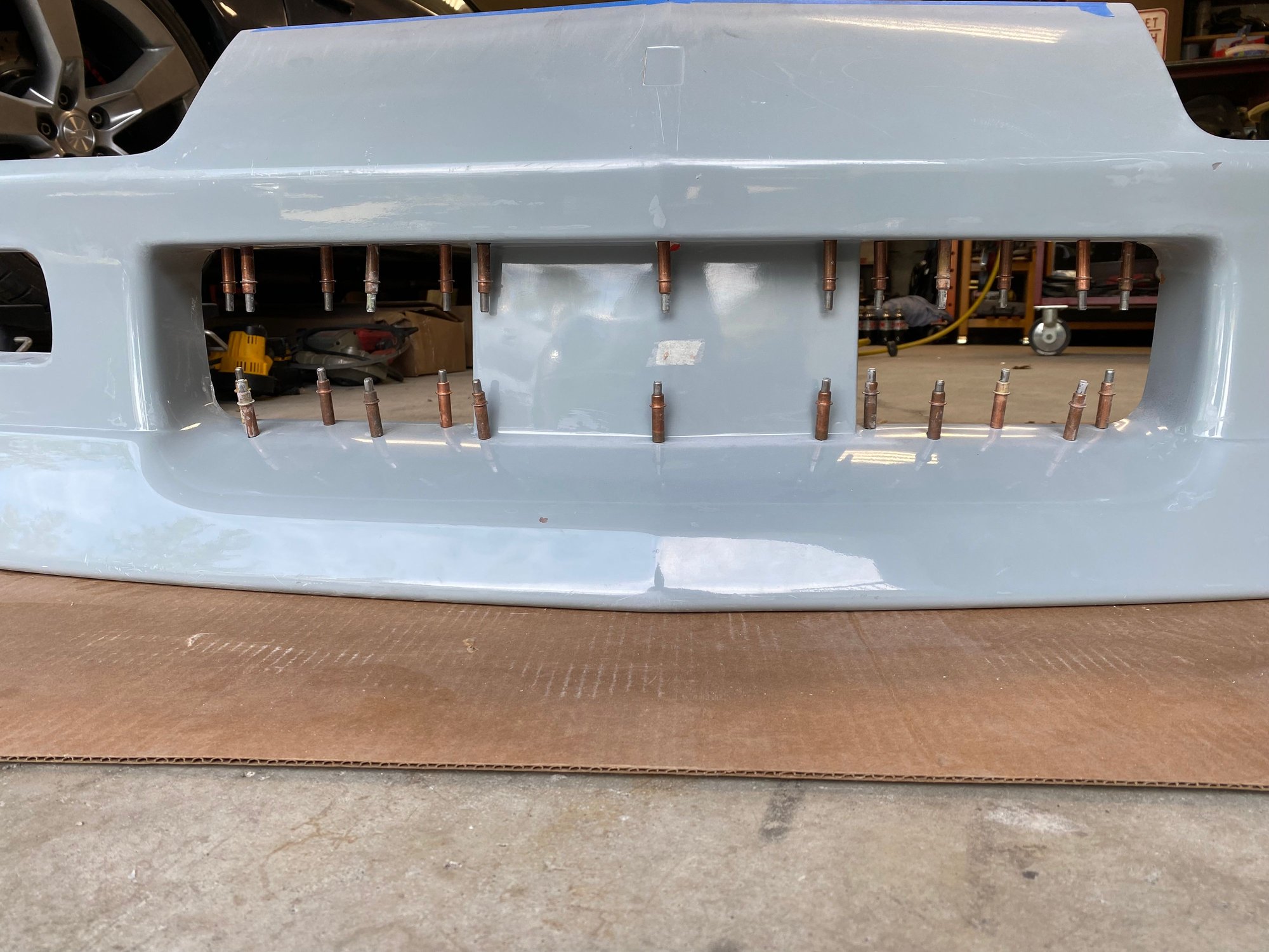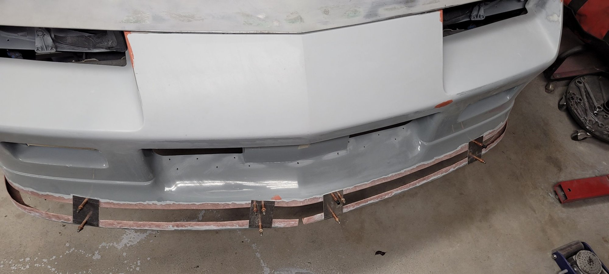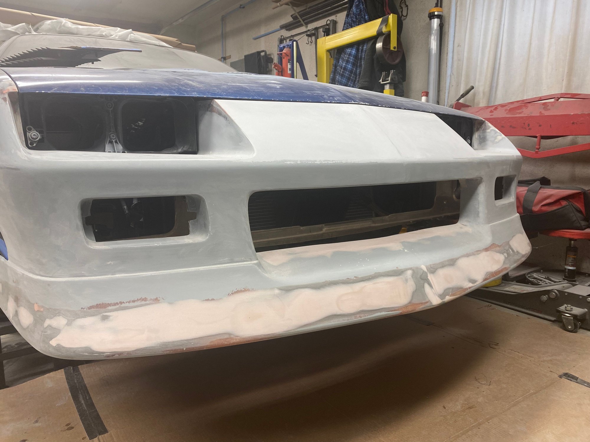 I can’t do an original front bumper, can I? I’m going to remove the center license plate bracket, install BMW headlights, and extend the spoiler 1” to level with the ground.