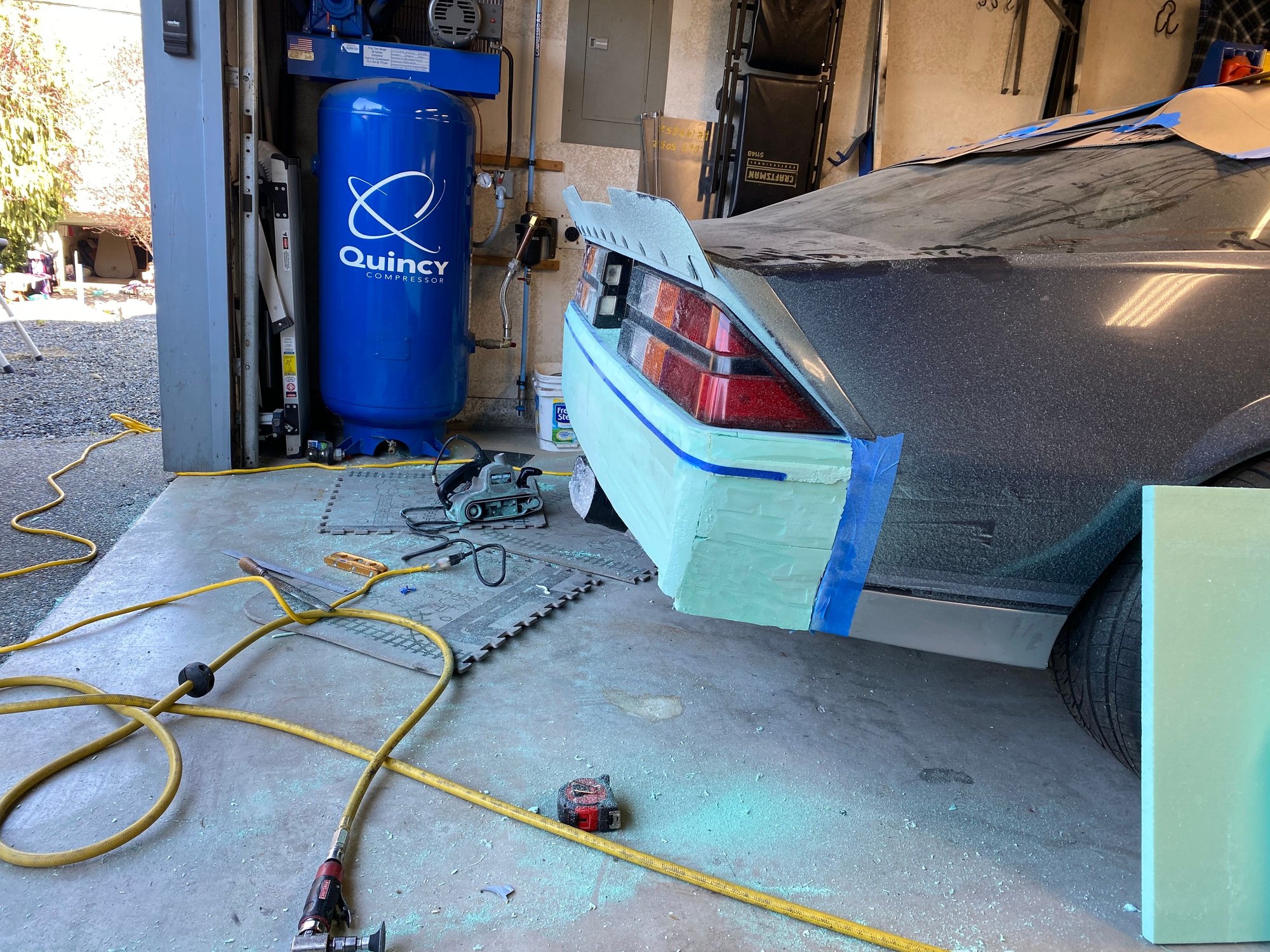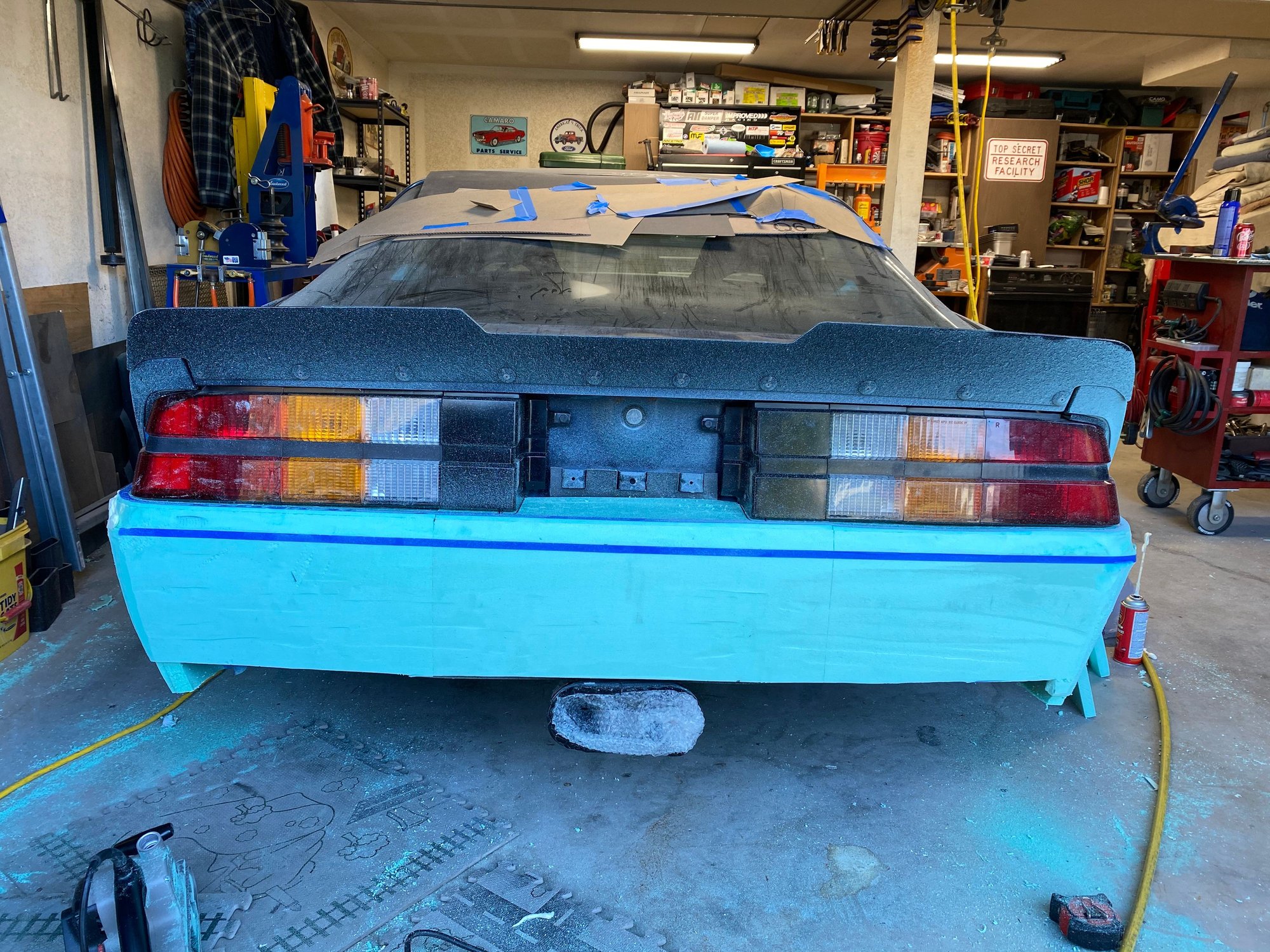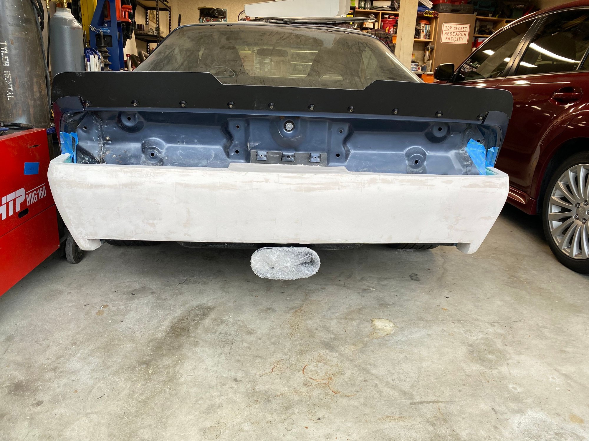 I can’t do an original front bumper, can I? I’m going to remove the center license plate bracket, install BMW headlights, and extend the spoiler 1” to level with the ground.