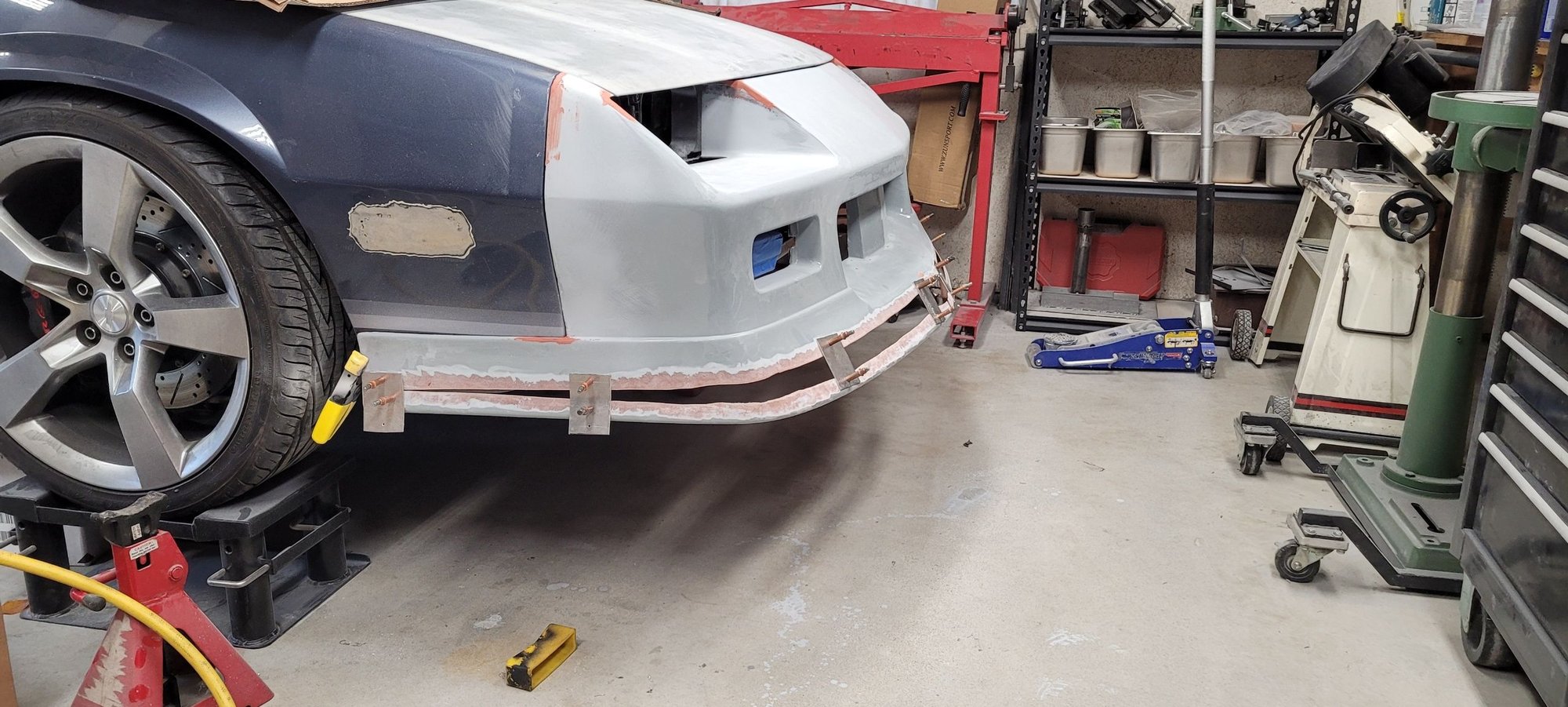 I am putting a fiberglass front “bumper” on the car to compliment the custom rear bumper that I am making. There was a lot of work that had to be done in order for this to fit properly and I made some modifications to personalize it.