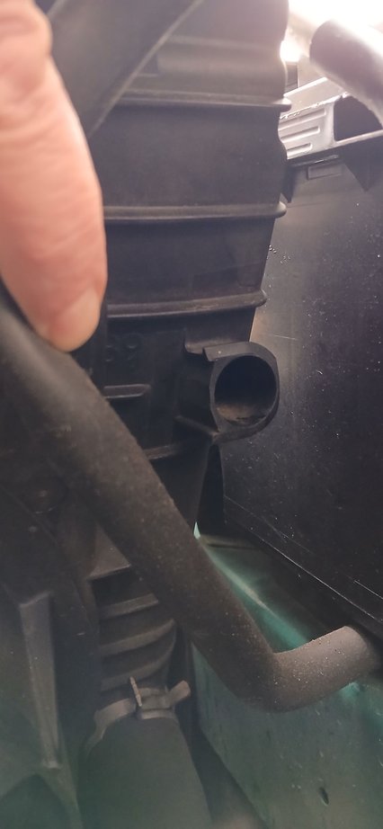 Are you talking about the coolant overflow hose? It should be right under the rad cap. When you heat water it expands. The overflow system is a plastic tank that catches the expanding fluid and keeps it until the engine cools back down and draws it in.