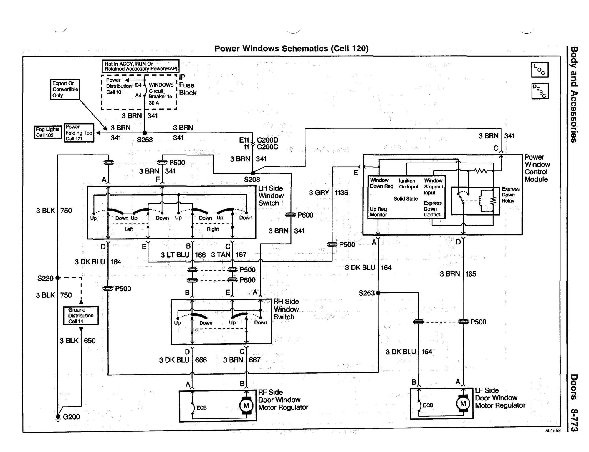 Here are two schematics from the 1998 Service Manual that help explain how the windows are wired. If you're interested, you can download a copy of this manual which has a troubleshooting guide that may also help you. Here's a link.