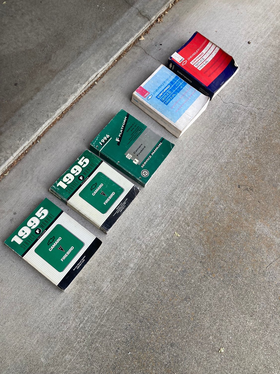 I didn't see a specific sale thread so here goes. I have 5 factory repair manuals for sale,' 90 to '96 from a local dealer that closed in the '90's, Woodard Chevrolet. I want them to go to a Camaro enthusiast, not some random Facebook person. I attached an image, I want $20 bucks each, or $100 for the set. Real nice condition, Call or text 530-574-7176, do not reply on this forum or via e-mail, I don't go online often, you will miss out. thanks for looking.