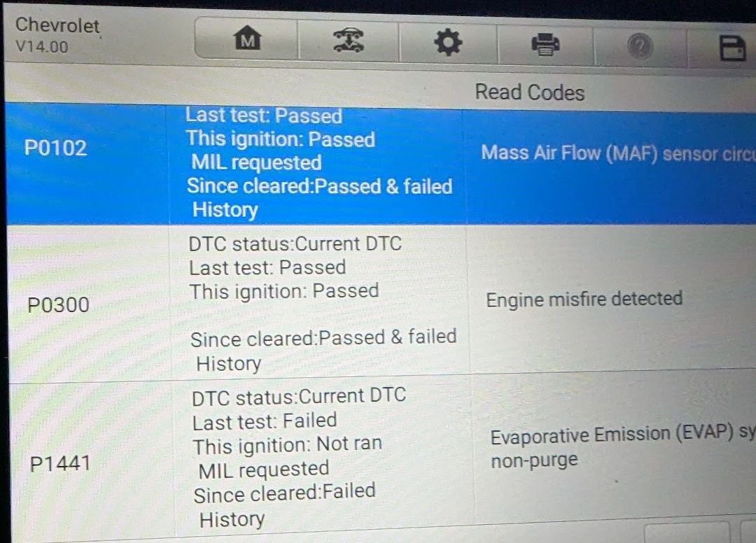 The MAF replacement cleared the MAF code, the Evap tubing also made idle smoother and more stable, and EGR replacement actually made it idle properly and stop blowing exhaust into the interior when stopped in traffic.