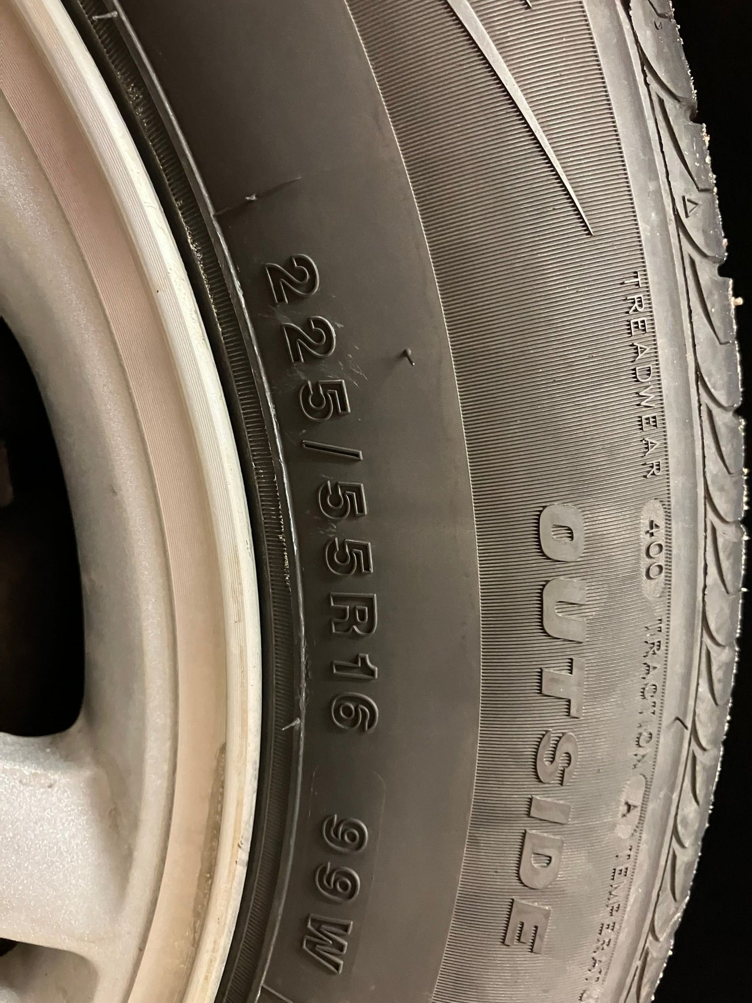 The original tire size 245/50/R16 is from what I understood pretty obsolete and hard to find anymore, aiming for the same height as 245/50/R16 (122.5 mm) closest was 225/55/R16 (123.7 mm) which first seemed way too narrow, but as I had a chance to buy a set of nearly new one’s real cheap, I decided to give it a shot which so far has turned out well.