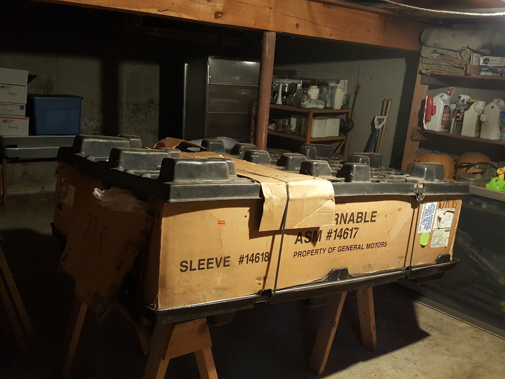 It is still in it's original crate and stored in our cellar for years. One end of the crate looks a bit worn but you can see inside and there doesn't appear to be any stains or mold from what is visible.