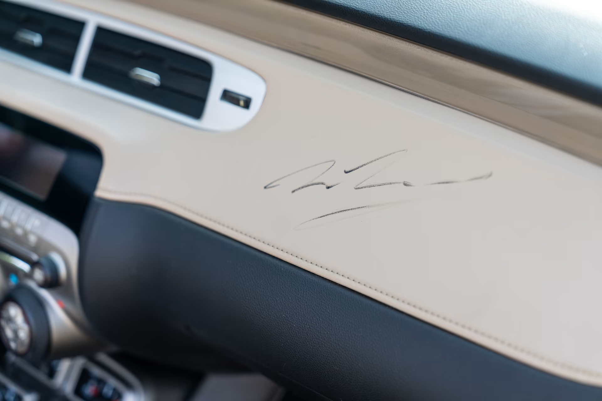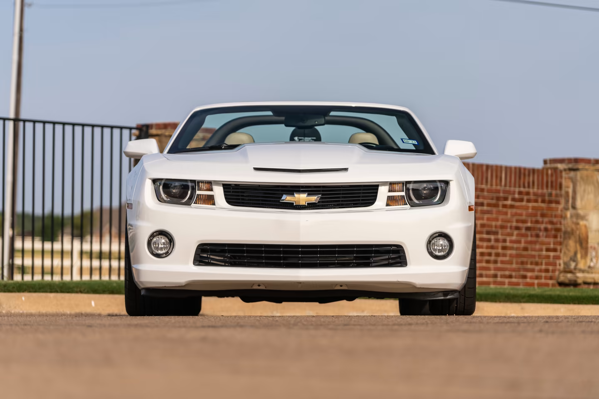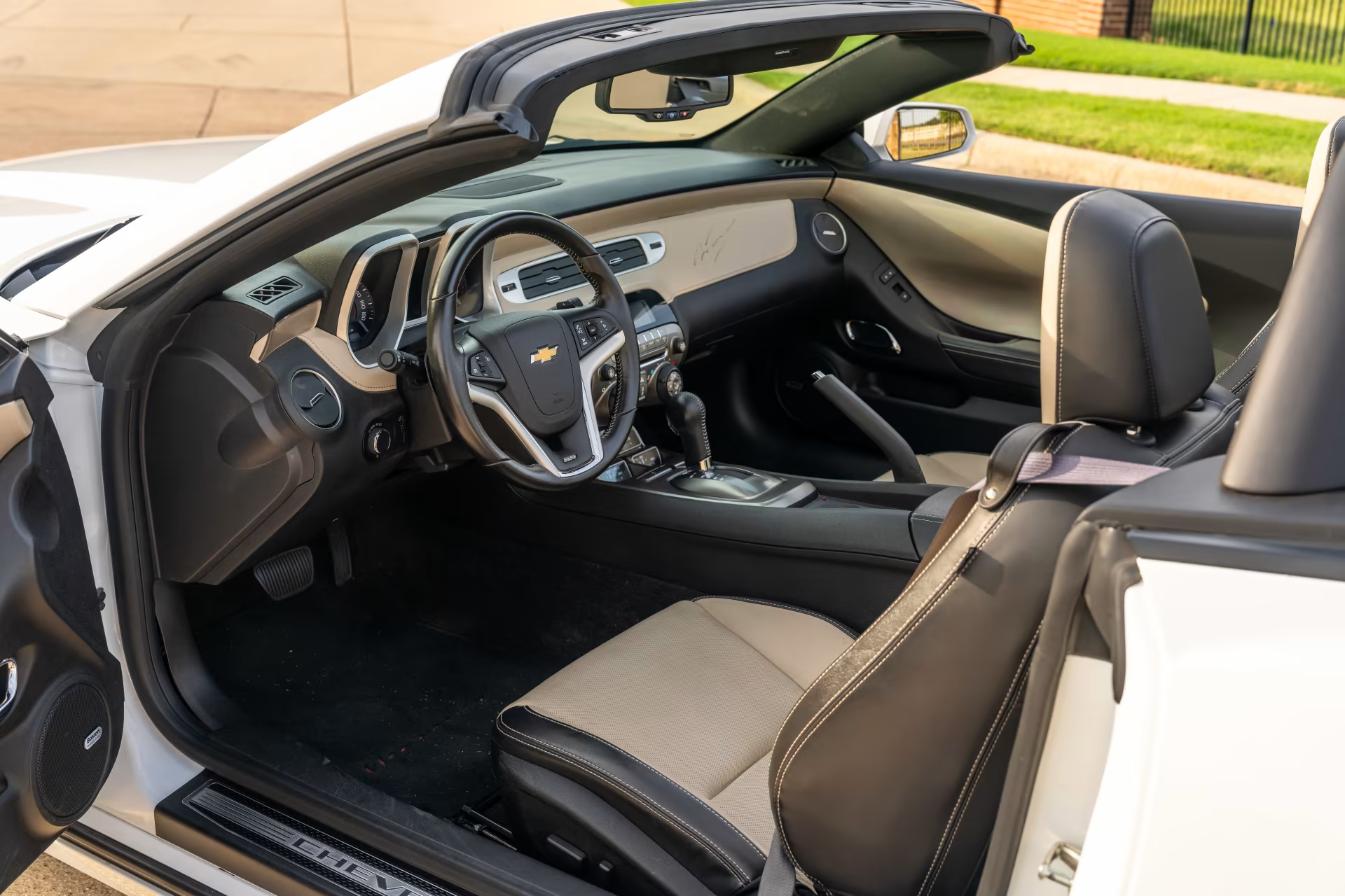 It is white with a tan top and interior and one of the best-looking 5th gen Camaros in the DFW metroplex. Everything works as it should with the AC blowing very cold and the heated seats warm your tush. Hopefully, I can attach some pictures for your viewing enjoyment.